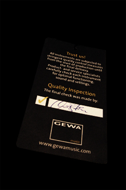 Alle Instrumente sind strengen Qualitätskontrollen durch qualifizierte Instrumentenbauer unterworfen, angefangen beim Produktionsbeginn bis hin zur Auslieferung.