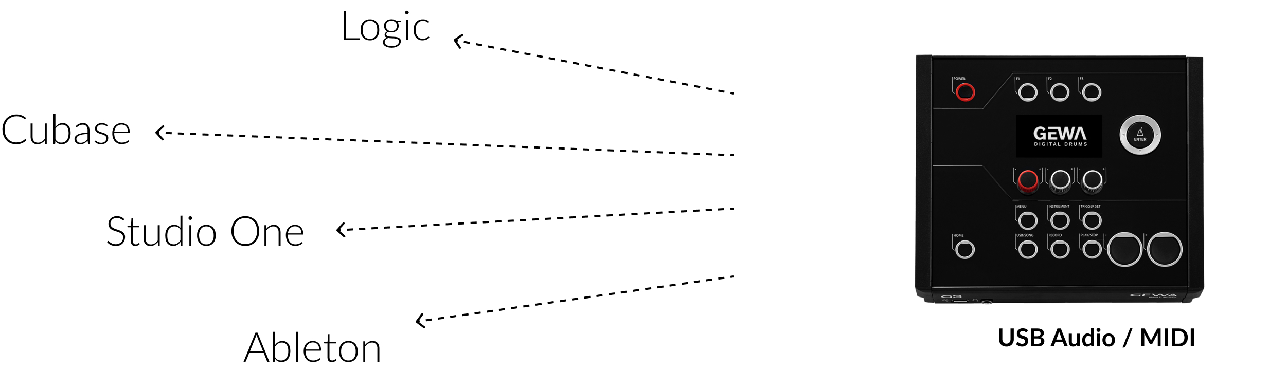 The GEWA G3 has an internal USB audio interface. You can use it to record up to 8 audio channels + MIDI directly in your DAW.